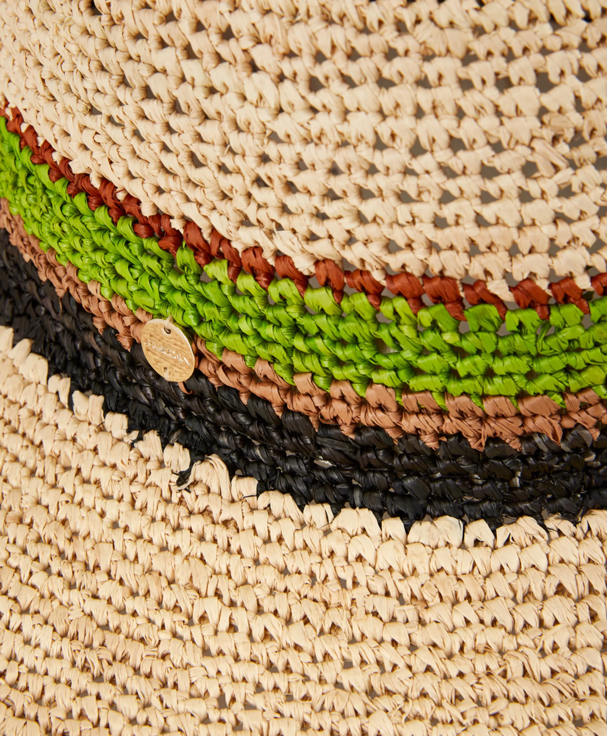 Bij Deze Zonnehoed Wordt De Ronde Vorm Van De Bolhoed Gecombineerd Met Een Brede Rand. De Hoedband Is Vervangen Door Gevlochten Contrastkleurige Strepen. Het Design Is Gemaakt Van 100% Natuurlijk Stro.