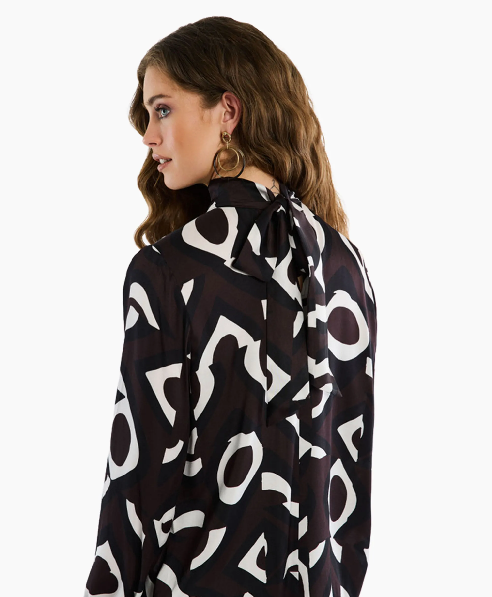 De Izzie Satin Eyes Top Van Studio Anneloes Is Een Vrouwelijke, Satijnachtige Top Met Opstaande Kraag En Striksluiting In De Nek. Een Studio Anneloes Bestseller! Samenstelling: 51% Recycled Viscose, 49% Viscose Ecovero.